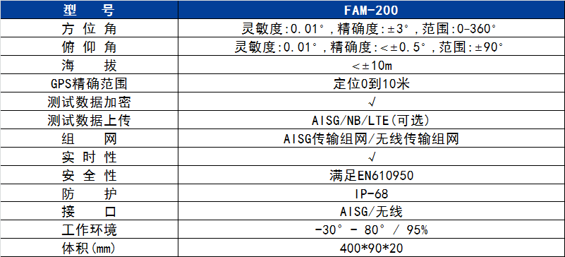 采用高精度傳感器,精確測(cè)試經(jīng)緯度、方位角、俯仰角、海拔等天線指標(biāo)