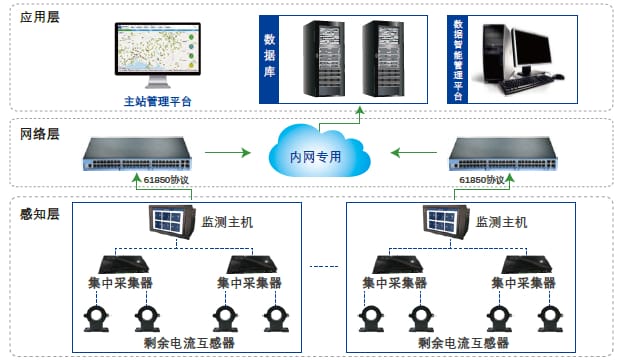 站用交流系統剩余電流監測裝置,通過對站內總回路監測和各交流支路的實時剩余電流進行監測,從而判斷交流系統是否存在漏電流風險。裝置主要由監測主機、集中采集器、剩余電流互感器等組成,采用直接測量和矢量合成相結合技術實時監測變電站內各交流饋線的剩余電流,可有效幫助維護人員快速定位出故障回路,大大縮短了交流絕緣故障的查找時間,保證了站用交流供電系統的安全運行。設計依據【 T/CEC 703—2022 站用低壓交流電源系統剩余電流監測裝置技術規范】