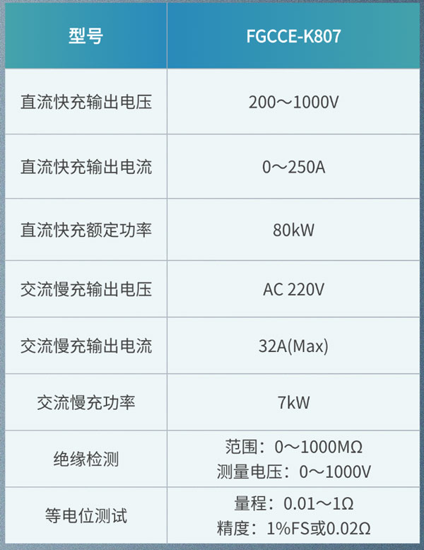 PA電子FGCCE-K807新能源車運(yùn)行安全一體化檢測設(shè)備集成了直流快充、交流慢充、絕緣檢測、等電位檢測及容量診斷功能,能夠?qū)π履茉雌嚨碾姎獍踩c動力蓄電池安全進(jìn)行標(biāo)準(zhǔn)化檢驗。