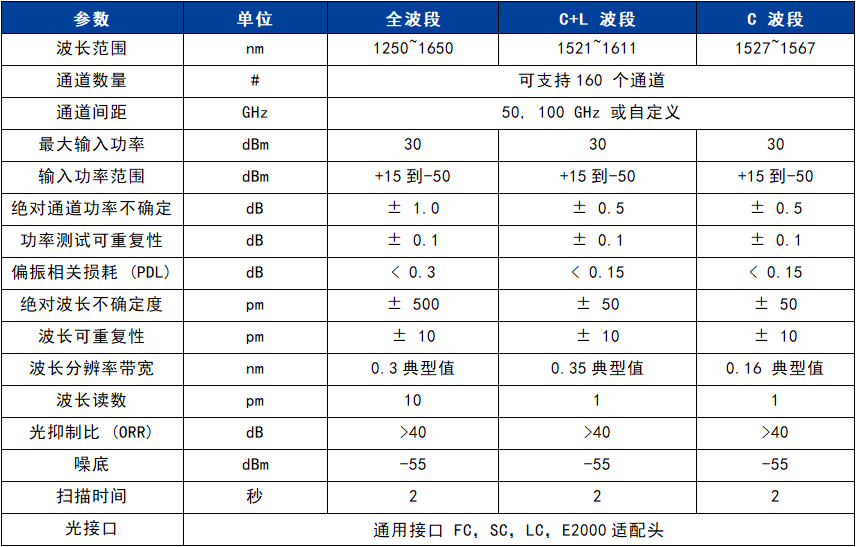 ● 可以同時進行160個通道的波長測量