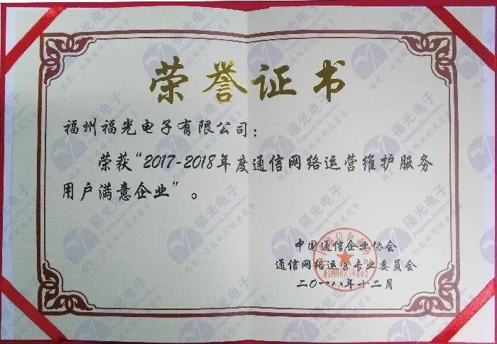 12月20-21日,福州PA電子官網有限公司受邀參加由中國通信企業協會指導,中國通信企業協會通信網絡運營專業委員會主辦的2018年中國通信網絡運營維護服務年會,會議同期榮獲 “2017-2018年度通信網絡運營維護服務用戶滿意企業”稱號,連續多年獲得中國通信企業協會授予的“用戶滿意企業”殊榮。